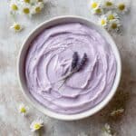 Store the lavender buttercream in an airtight container in the refrigerator for up to one week. Before using, bring it to room temperature and re-whip with a mixer to restore its fluffy consistency. If the frosting thickens too much, add a little milk, one teaspoon at a time, while beating until smooth again.