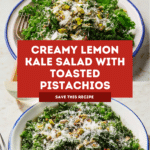 Keywords: kale salad, creamy lemon vinaigrette, pistachios, Pecorino, healthy salad, massaged kale, easy salad recipe, nutritious lunch