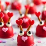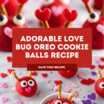 These adorable Love Bug Oreo Cookie Balls are a delightful no-bake treat perfect for Valentine’s Day or any festive occasion. Made with crushed Oreos and cream cheese, then dipped in vibrant red candy coating and decorated with mini pretzels as antennae, heart sprinkles, and candy eyeballs, these bite-sized sweets are as fun to make as they are to eat.
