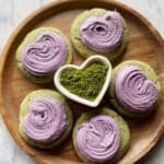 Keywords: matcha cookies, lavender frosting, sugar cookies, floral cookies, matcha dessert, easy cookie recipe, tea party recipe