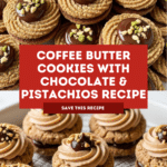 These Melt-in-Your-Mouth Coffee Butter Cookies bring a delightful combination of robust coffee flavor, cinnamon warmth, and buttery texture. Perfectly piped and baked to golden perfection, these cookies are then enhanced with a smooth dark chocolate dip and a crunchy pistachio topping, ideal for holiday celebrations or any special occasion craving a comforting treat.