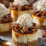 These Mini Pecan Pie Cheesecakes combine creamy, rich cheesecake with the sweet, nutty topping of classic pecan pie. Perfectly portioned for parties or a special treat, they offer a delightful mix of textures and flavors in every bite.