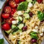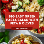 Nagi’s Big, Easy Pasta Salad is a vibrant and refreshing dish featuring soft, flavorful bow tie pasta tossed with a zesty homemade dressing, fresh cucumbers, juicy cherry tomatoes, tangy Kalamata olives, creamy Greek feta, and aromatic basil leaves. This pasta salad is perfect for gatherings, potlucks, or a simple, satisfying meal on its own.