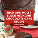 Nanny’s Black Midnight Cake is a deeply rich, moist chocolate cake featuring a blend of dark cocoa and a hint of cayenne for subtle warmth. The cake is tender and fluffy, soaked with brewed coffee to enhance the chocolate flavor, and layered with a smooth, creamy dark cocoa buttercream frosting. Perfectly baked for evenness using cake pan strips and baked in parchment-lined pans dusted with cocoa, this cake is a decadent treat for chocolate lovers that balances bold flavors with a delicate crumb.