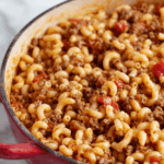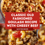 This Old Fashioned Goulash is a comforting classic American casserole featuring tender elbow macaroni mixed with a savory, tomato-based ground beef sauce, seasoned with garlic, onions, and Italian herbs, and topped with melted cheddar cheese. Perfect for a hearty family dinner, it’s baked in the oven until bubbly and cheesy.