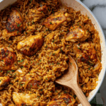 This One Pot Shawarma Chicken and Rice is a flavorful and aromatic Middle Eastern-inspired dish featuring tender, spiced chicken thighs seared to golden perfection and cooked with fragrant long grain rice in a single pan. Infused with cumin, coriander, paprika, and lemon juice, this easy-to-make recipe offers a delicious, hearty meal that combines protein, rice, and spices in one pot for minimal cleanup and maximum taste.