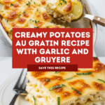 Potatoes au Gratin, also known as Dauphinoise, is a creamy, cheesy baked potato dish that’s perfect for special dinners or a comforting side. Thinly sliced starchy potatoes are layered with garlic-infused cream, fresh thyme, and melting gruyere cheese for a rich and flavorful experience.