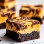 Keywords: pumpkin cheesecake bars, pumpkin dessert, chocolate swirl cheesecake, fall dessert, Halloween dessert, Thanksgiving dessert