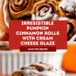 Keywords: pumpkin cinnamon rolls, pumpkin rolls, fall breakfast, pumpkin desserts, cinnamon rolls recipe, cream cheese frosting, autumn pastries