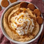 7. Serve with Toppings: Just before serving, top the dip with whipped cream, crushed ginger snaps, and drizzle with salted caramel sauce if desired for an extra decadent touch.