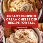 This Pumpkin Cream Cheese Dip is a creamy, spiced treat perfect for autumn gatherings or cozy nights in. With a blend of pumpkin, warm spices, and smooth cream cheese, it’s both comforting and delicious. Serve it with cookies or fresh fruit for an irresistible dessert or snack.