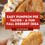 Keywords: pumpkin pie tacos, pumpkin dessert, fall dessert, cinnamon sugar tacos, festive dessert, pumpkin pie filling, whipped cream topping