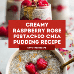 This Raspberry Rose Pistachio Chia Pudding is a delicate and refreshing no-cook dessert that combines the floral notes of rosewater with the crunch of roasted pistachios and the natural sweetness of raspberries. Blended smoothly with almond milk and lightly sweetened with honey, this pudding is perfect for a nourishing breakfast or a light, elegant snack.