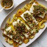 This roasted fish and leeks vinaigrette is a light yet flavorful dish perfect for a weeknight dinner or a special occasion. Tender leeks and flaky white fish are roasted to perfection and finished with a tangy, fresh vinaigrette that brightens every bite.