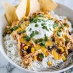 This easy and flavorful Santa Fe Chicken recipe combines seasoned chicken breasts with black beans, corn, diced tomatoes with green chilies, and enchilada sauce, all slow-cooked to tender perfection. Topped with melted Mexican cheese blend and green onions, it’s perfect for tacos, burritos, quesadillas, or served over rice for a satisfying southwestern meal.