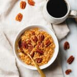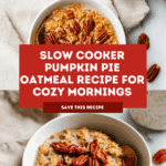 This Slow Cooker Pumpkin Pie Oatmeal is a comforting and hearty breakfast dish perfect for fall mornings. Made with steel-cut oats, pumpkin puree, warming spices, and sweetened with maple syrup, it cooks slowly to develop rich flavors and a creamy texture. Topped with chopped pecans and a drizzle of maple syrup and almond milk, it’s an easy, nutritious start to your day that can be prepared overnight.