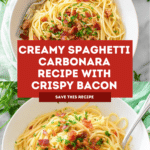 This classic Spaghetti Carbonara recipe offers a creamy, flavorful Italian pasta dish made with crispy bacon, a rich egg and Parmesan cheese sauce, and a blend of aromatic herbs and spices. Quick and easy to prepare, it’s perfect for a satisfying weeknight dinner.
