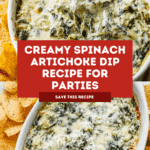 Spinach Artichoke Dip is a creamy, cheesy appetizer that’s perfect for parties and gatherings. Combining tender spinach, tangy artichokes, and rich cheeses, this dip is sure to be a crowd-pleaser served warm with crackers or bread.
