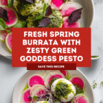 This Spring Burrata with Green Goddess Pesto is a fresh and vibrant dish perfect for celebrating the season. Creamy burrata pairs beautifully with a bright herb pesto and crisp radishes, creating a light yet satisfying appetizer or snack.