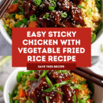 Sticky Chicken with Vegetable Fried Rice is a flavorful and satisfying meal perfect for any weeknight. The juicy chicken coated in a sweet and tangy sauce pairs beautifully with the colorful, vegetable-packed fried rice. This recipe offers a tasty way to enjoy a homemade Asian-inspired dinner.