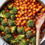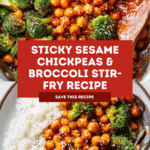 This Sticky Sesame Chickpeas & Broccoli recipe offers a deliciously sweet and savory glaze coating tender broccoli florets and hearty chickpeas. Enhanced with sesame oil, garlic, and ginger, it’s a quick stovetop dish perfect for a nutritious, satisfying vegetarian meal.