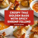 Thai Golden Bags are a delicious bite-sized appetizer filled with a flavorful shrimp mixture wrapped in crispy wonton wrappers. They balance savory, tangy, and a touch of sweetness, creating a perfect snack for gatherings or a special treat.