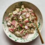 This chicken salad is a fresh and flavorful twist on a classic, made without celery but packed with crunchy radishes and vibrant herbs. It’s easy to prepare and perfect for a light lunch or a satisfying snack. The tangy dijon mayo dressing ties everything together beautifully.