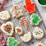 Keywords: Christmas sugar cookies, holiday cookies, vanilla frosting cookies, festive cookie recipe, soft sugar cookies, cut-out sugar cookies