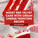This classic Red Velvet Cake recipe delivers a perfectly moist and tender cake with a subtle cocoa flavor enhanced by a vibrant red hue. Layered with a rich and creamy cream cheese frosting and decorated with festive sprinkles, this cake is ideal for celebrations or any special occasion.