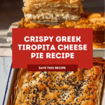 Keywords: Tiropita, Greek cheese pie, filo pastry, feta cheese, ricotta cheese, savory pie, Greek appetizer, baked cheese pie