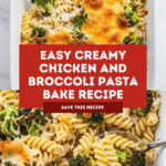 Keywords: Chicken pasta bake, creamy chicken broccoli pasta, easy pasta bake, cheesy chicken casserole, weeknight dinner, one dish meal