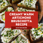 Warm Artichoke Bruschetta is a creamy, flavorful appetizer that’s perfect for sharing. Combining tender artichokes with rich mascarpone and Parmesan, this spread pairs beautifully with toasted crusty bread. It’s simple to make but impressive enough for entertaining.